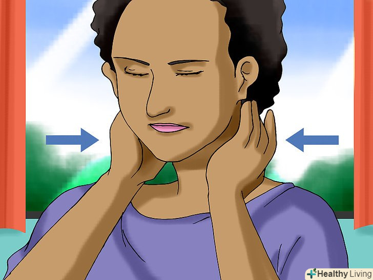 Обмацайте шию і перевірте, чи не збільшені лімфатичні вузли.вказівним і середнім пальцями акуратно помацайте ліву і праву сторони шиї, горло уздовж лінії підборіддя і за вухами. Пошукайте тверді або чутливі вузли розміром з ніготь мізинця. Це можуть бути опухлі лімфатичні вузли. Хоча лімфатичні вузли можуть збільшуватися кожного разу, коли організм бореться з інфекцією, це частіше трапляється при бактеріальних інфекціях.[12]