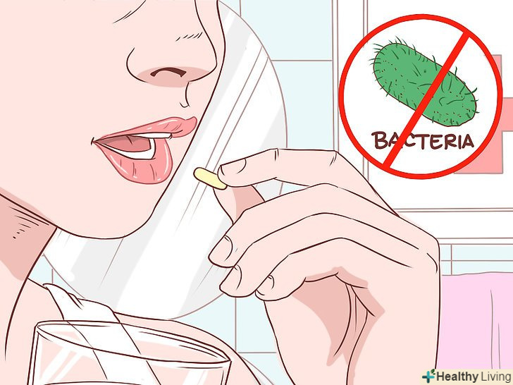 Лікуйте бактеріальні інфекції за допомогою антибіотиків. антибіотики-це лікарські препарати, які допомагають боротися з бактеріальними інфекціями. Вони дезактивують або вбивають бактеріальні клітини, і, таким чином, допомагають імунній системі боротися з бактеріями. [15]- Наносите крем або мазь з антибіотиками на невеликі рани, в які потрапила інфекція. Ознаками інфікування рани можуть бути почервоніння, набряк, тепло або біль. Не наносьте кошти з антибіотиками на рани, що кровоточать, особливо, якщо вони глибокі. Якщо кровотеча з рани ніяк не припиняється, зверніться до лікаря.