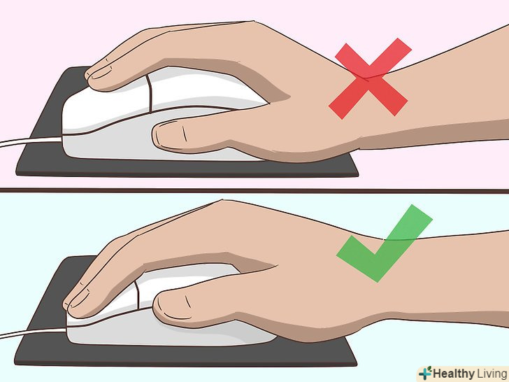 Користуйтеся зручною комп'ютерною мишею. якщо ви проводите багато часу за комп'ютером, значить, на судому може впливати робота з комп'ютерною мишею. На щастя, у продажу є велика кількість різних комп'ютерних мишей, так що ви без зусиль знайдете підходящу миша для своєї руки. Переконайтеся, що коліщатком мишки можна рухати з мінімальними зусиллями. [20]- Якщо хочете, витратьтеся на ергономічну комп'ютерну мишу, особливо якщо відчуваєте хронічні судоми рук або багато працюєте за комп'ютером.
