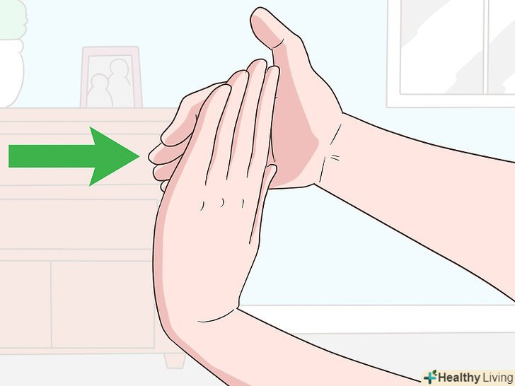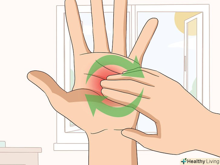Розімніть руку. тримайте руку прямо і зведіть пальці разом. Іншою рукою обережно натисніть на руку подушечками пальців. [3]