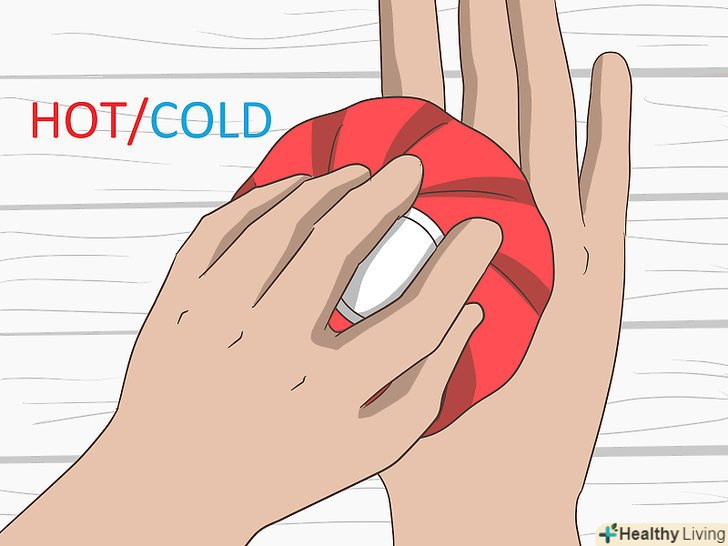 Прикладіть до руки холодний або теплий компрес. і тепло, і холод допомагають вгамувати біль. Тепло краще підходить, якщо вам потрібно вгамувати судому або розслабити напружені м'язи. Холод допомагає вгамувати набряк. [7]- Щоб захистити шкіру, помістіть між нею і компресом шматок тканини.