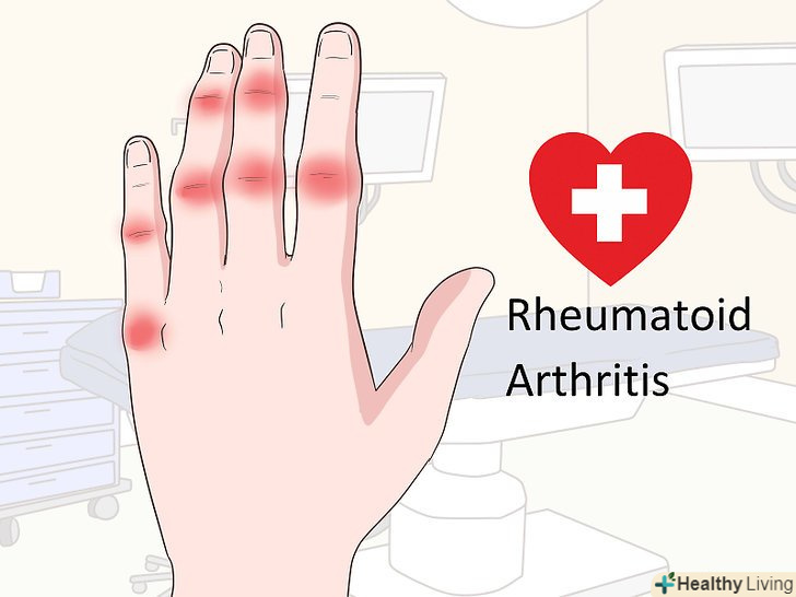 Пройдіть обстеження на симптоми ревматоїдного артриту, якщо відчуваєте хронічні судоми. ревматоїдний артрит може призводити до частих судом, тяжкість яких з часом може погіршуватися. Зверніться до лікаря, якщо біль і набряк тривають кілька тижнів. [11]- Розминка і масаж допоможуть вгамувати симптоми ревматоїдного артриту, але вам все ж краще звернутися до лікаря і дізнатися, як робити їх правильно, щоб не погіршити захворювання.