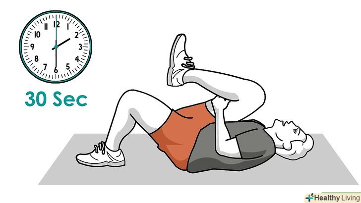 Тримайте коліно однієї ноги впритул до грудей протягом 30 секунд. Зберігайте іншу ногу в зручному для вас положенні, зазвичай стопою на підлозі в зігнутому або випрямленому положенні.- Для невеликого ускладнення вправи і подальшого розвитку розтяжки, натисніть руками на гомілку піднятою до грудей ноги в поперечному вашому тулубу напрямку.