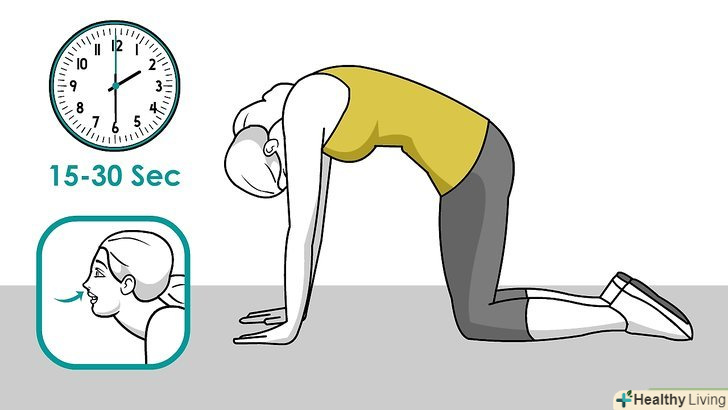 Глибоко і вільно дихаючи, не виходячи з прийнятого тільки що положення, зігніть дугою свою спину і зафіксуйте таке положення протягом 15 або 30 секунд.- Ви повинні відчути легке потягування в нижній області спини. Ви можете трохи підкоригувати виконання вигину спини дугою відповідно до своїх уподобань.
