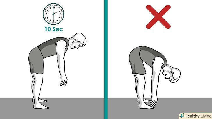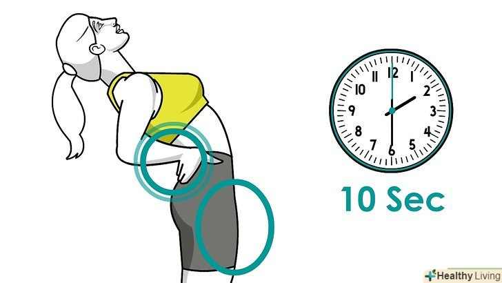 Зберігайте цю позицію 10 секунд. ви швидше за все відчуєте невелике потягування в області спини.- Обережно поверніться в положення стоячи рівно. повторіть ці вправи два або три рази.