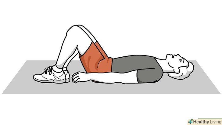 Ляжте спиною на килим або гімнастичний мат. зігніть ноги в колінах і розташуйте стопи ніг біля свого куприка.- Такий метод розтяжки добре підходить людям, які вже страждають від болю в спині. Дана вправа допоможе розтягнути спину, а також допоміжні м'язи стегон і сідниць.