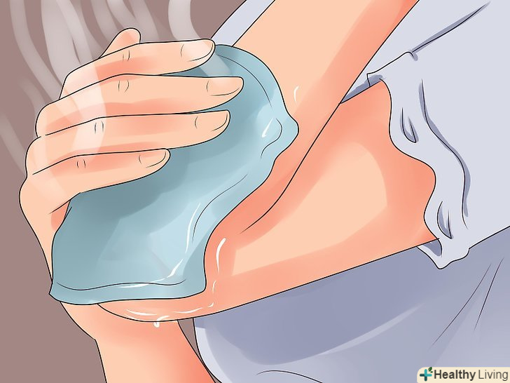 Прикладайте холодний компрес. прикладайте холодний компрес на хворобливий суглоб два рази на день, принаймні, на 20 хвилин, щоб зменшити запалення і біль.- Обов'язково підкладайте під холодний компрес тканину або рушник. Ніколи не прикладайте холодний компрес безпосередньо до шкіри, так як це може привести до обмороження.