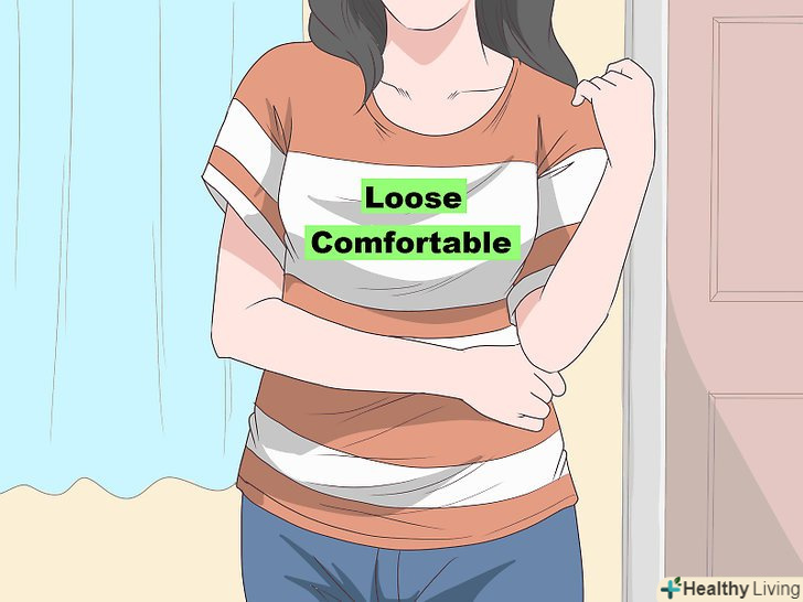 Носіть вільний одяг. Тугі бюстгальтери і топи можуть дратувати груди. Носіть вільний одяг і зручні бюстгальтери або топи, особливо якщо у вас мастит.[15]