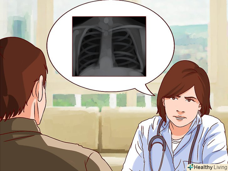Зробіть рентген. якщо лікар виключить розтягнення м'язів і запідозрить легеневу інфекцію, він направить вас на рентгенологічне обстеження. Рентгенівський знімок грудної клітини допоможе виявити зламані ребра, скупчення рідини в легенях (набряк легенів), пухлина легенів і будь-яке інше пошкодження тканин легенів в результаті куріння, роздратування навколишнім середовищем, емфіземи, кістозного фіброзу або туберкульозу. [9]- Рентген практично завжди дозволяє виявити прогресуючий рак легенів, проте на ранніх стадіях захворювання може залишитися непоміченим.
