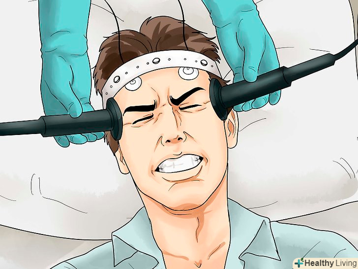 Подумайте про застосування електросудомної терапії. дослідження дозволяють припустити, що електросудорожна терапія має певний позитивний ефект на пацієнтів з шизофренією. Нерідко таке лікування призначається людям з хронічною депресією. Даний вид терапії більше поширений на території ЄС, але поки існує мало доказів того, що ця терапія ефективна в лікуванні шизофренії. Проте, зареєстровані окремі випадки, коли у людей зі стійкими симптомами, що не піддаються іншим видам лікування, був отриманий позитивний ефект від електросудомної терапії. [26]- Процедури електросудомної терапії зазвичай проводять по три рази на тиждень. Пацієнту може знадобитися провести від декількох сеансів (трьох або чотирьох) до 12-15 процедур. Сучасні методи електросудомної терапії безболісні, на відміну від тих, що практикувалися на зорі цієї методики.