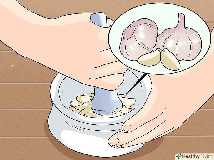 Спробуйте часник. сірчані компоненти часнику-аджоен і алліцин-володіють протигрибковими і бактерицидними властивостями. [5] [6] принаймні одне дослідження показало, що часник ефективніше тербінафіну при лікуванні стригучого лишаю. [7]- Подрібніть 2-3 зубчики часнику (або більше, в залежності від розміру області поширення висипу) і змішайте з базовим маслом, таким як касторове або мигдальне. Нанесіть отриману суміш на висип і залиште на 10-15 хвилин, а потім змийте теплою водою. Повторюйте процедуру 2-3 рази на день. Будьте готові до того, що запах може бути досить різким. При виникненні роздратування замініть базове масло, а якщо це не допоможе, додавайте в суміш менше часнику або спробуйте інший метод.