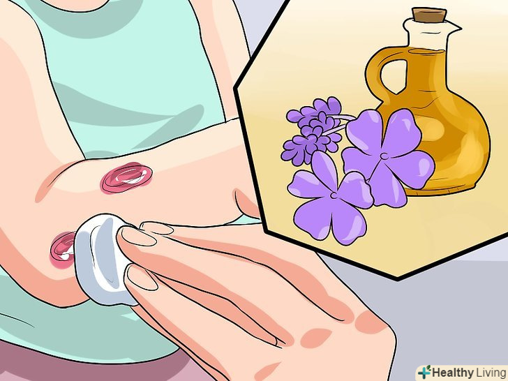 Спробуйте лавандове масло. лавандова олія має протигрибкові властивості і використовується в народній медицині для лікування грибкових інфекцій і шкірних захворювань. Цей метод часто рекомендують для дітей, так як більшості малюків подобається аромат лаванди, яка на додаток ще й надає заспокійливий ефект.- Змішайте 1-2 краплі лавандового масла з 1 столовою ложкою касторової олії або масла жожоба. Нанесіть суміш безпосередньо на область висипання і залиште на 10-15 хвилин, а потім змийте теплою водою. Повторюйте процедуру 2-3 рази на день.