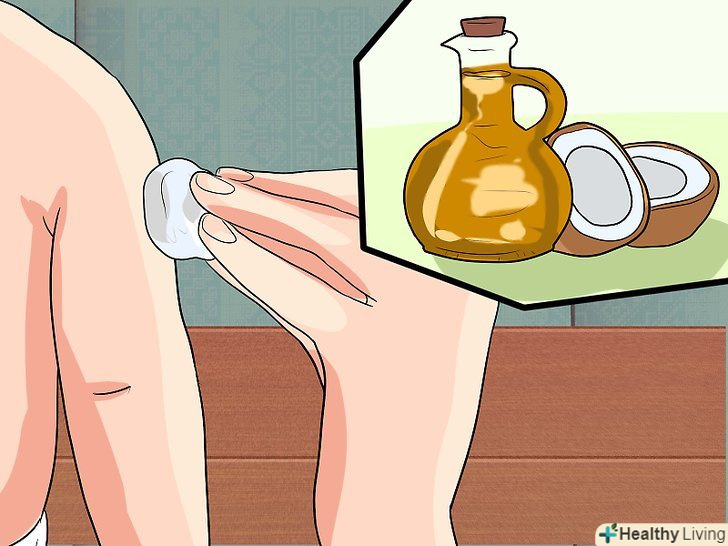 - Нанесіть кокосове масло безпосередньо на уражену область або змочіть їм ватний тампон і прикладіть до ураженої області. Масажними рухами нанесіть кокосове масло за допомогою ватного тампона і залиште на ніч. [12]