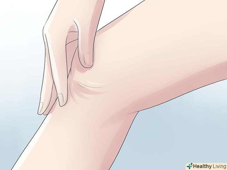 Прислухайтеся до відчуттів: Чи відчуваєте ви, що коліно ніби чимось обтягнули? Коли рідина починає накопичуватися, на задню частину коліна чиниться тиск. Може виникнути відчуття, що коліно ось-ось лопне, особливо це відчувається, коли людина стоїть, і ноги випрямлені. Тоді шкіра навколо коліна повністю розтягується, і можна помітити відчуття стягнутості. [2]