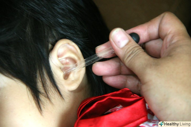 Якщо ви точно знаєте, що перфорації барабанної перетинки у вас немає, використовуйте спринцівку, щоб промити вухо теплим сольовим розчином або розчином з теплої води і оцту (1 до 1). бажано, щоб температура розчину збігалася з температурою тіла, так як холодна або гаряча рідина, що потрапила в вуха, може привести до запаморочення.- При свербінні у вухах рекомендується використовуватися безрецептурні Вушні краплі до і після плавання, а також в тих випадках, коли вухо вступає в контакт з вологою. Ось як треба користуватися такими краплями: