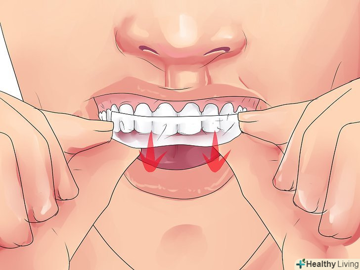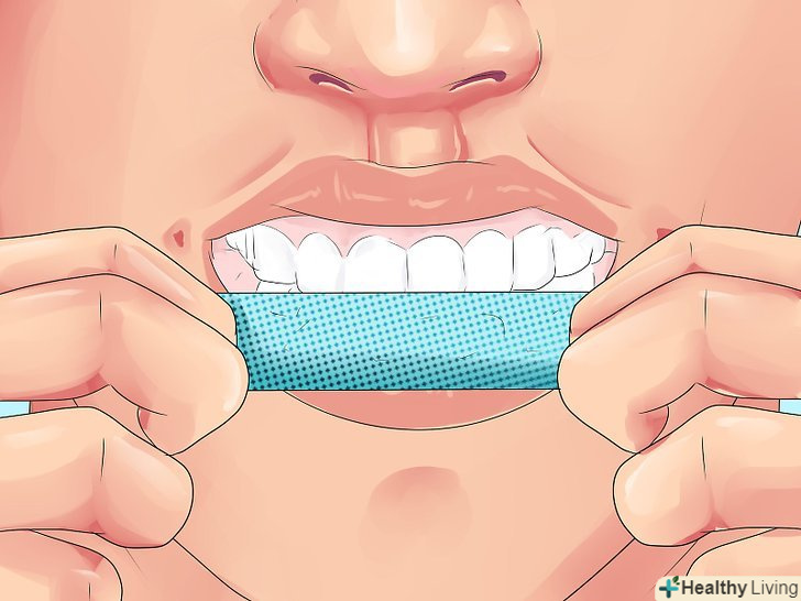 Прикладіть смужки до зубів. вони повинні щільно "приклеїтися". Намагайтеся не розмовляти і не ворушити мовою, щоб не розмазати гель. Можливо, вам знадобитися частіше ковтати слину, якщо тільки інструкція не забороняє цього. Після того, як прикладіть смужки до зубів, просто почекайте необхідну кількість часу, найчастіше - 30 хвилин.