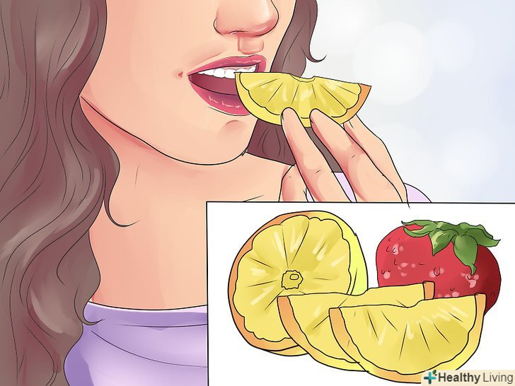 Їжте більше суниці та лимонів. у цих фруктах міститься кислота, яка здатна видалити плями з зубної емалі. Щоб не їсти лимон цілком, просто потріть шматочок про зуби, але не робіть це занадто часто, тому що так ви можете пошкодити емаль. В іншому суниця і лимони корисні для організму.