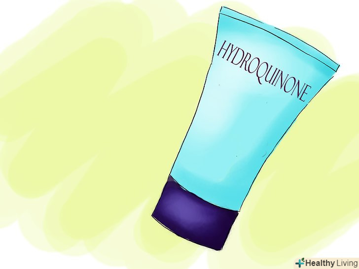 Пошукайте безрецептурний крем з гідрохіноном. препарати на його основі освітлюють шкіру, через що сліди мелазми стають менш помітними.- Гідрохінон можна знайти в кремах, лосьйонах, гелях або рідинах. Принцип роботи в даному випадку такий: гідрохінон блокує вироблення меланіну (темного пігменту) в шкірі. Відповідно, кількість темного пігменту, що відноситься до мелазми, також знижується.