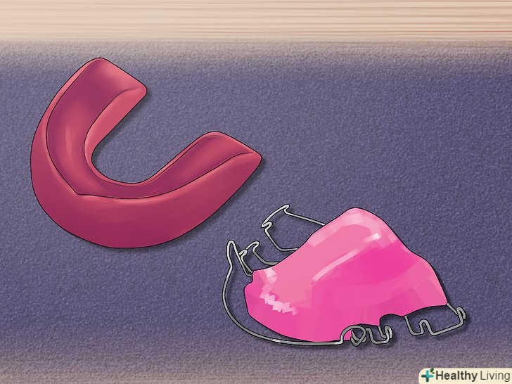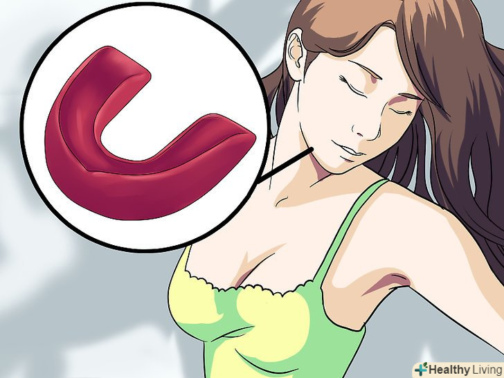 Вилікуйте зуби. якщо хронічний скрегіт зубами викликає у вас серйозну щелепну біль, можна звернутися до стоматолога за консультацією щодо стратегії боротьби з самим бруксизмом або, як мінімум, з його побічними ефектами. [10]- Користуйтеся капою. Це буде особливо корисно в разі нічного бруксизму. Капа, призначена для боротьби з бруксизмом, дозволить відокремити один від одного верхні і нижні зуби, що зменшить пошкодження і виникає при цьому біль. [11]