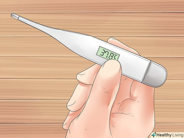 Виміряйте температуру.при помірному ларингіті, у вас буде жар. Спочатку, при вірусної інфекції, жар може бути досить сильним, але він повинен спасти протягом декількох днів.[2] якщо температура не спала після декількох днів, вона вказує на щось інше (інший тип інфекції).- Якщо жар не спадає або посилюється, негайно зверніться до лікаря, так як це може бути ознакою пневмонії.