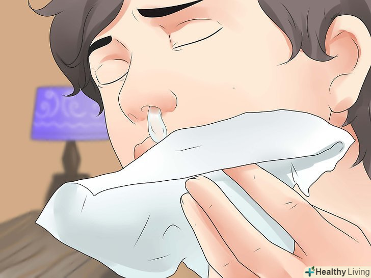 Зверніть увагу на наявність нежиті.Пам'ятайте, що нежить також є симптомом звичайної застуди. У дітей нежить зазвичай викликаний вірусом під назвою "респіраторний синцитіальний вірус". Як правило, цей симптом проходить протягом тижня без особливого лікування.- Нежить також може бути симптомом алергії. Однак, ви не будете відчувати захриплість голосу або жар, якщо ваші симптоми викликані алергією, а не ларингітом.