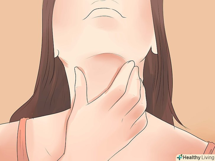 Відчуття грудки в горлі.якщо у вашому горлі розвиваються поліпи або невеликі вузлики або якщо всередині або зовні гортані утворилася пухлина, ви можете відчувати грудку в горлі. Він не обов'язково буде болючим, але буде викликати дискомфорт.- Це відчуття може привести до постійного бажання прокашлятися або прочистити ваше горло. Ви можете намагатися позбутися від грудки в горлі через кашель або намагатися постійно прочистити ваше горло. Якщо у вас виникло це бажання, постарайтеся противитися йому-кашель і прочищення горла тільки посилять роздратування гортані.