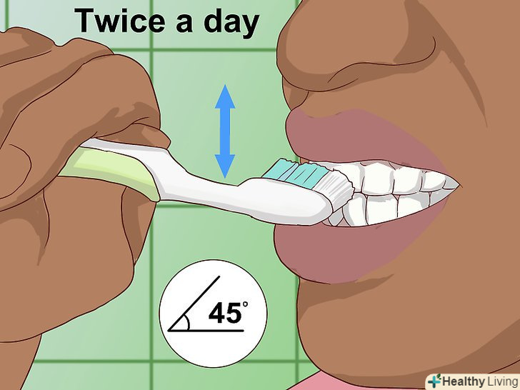Чистіть зуби двічі на день. купіть м'яку зубну щітку і акуратно чистіть зуби вранці і ввечері. Зубну щітку потрібно розташовувати приблизно під кутом в 45 градусів до поверхні ясен. Короткими вертикальними рухами (від ясен до жувальної поверхні або ріжучого краю зуба) рухайтеся по всьому зубному ряду, не натискаючи на щітку. Потім зробіть ще кілька вертикальних рухів, як би трохи "захоплюючи" при цьому ясна, немов ви намагаєтеся натягнути її на зуб. Такий масаж ясен поряд зі стандартною технікою Чищення стимулює зростання ясен і є хорошою профілактикою рецесії. [21]- Важливо почистити всі поверхні зубів.