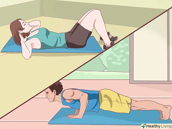 - Коли організм звикне до фізичних навантажень, спробуйте почати виконувати вправи з помірною кардионагрузкой 3-5 разів на тиждень. Слідкуйте за поставою і виконуйте всі вправи правильно, щоб уникнути травм. [17]