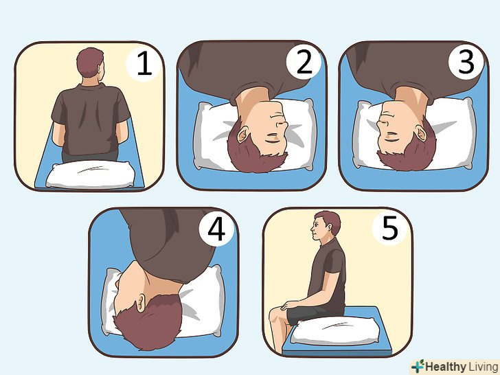 Підпирайте голову під час сну. найпоширеніший вид вертиго, ДППГ, відбувається через те, що мініатюрні кристали карбонату кальцію переміщаються з однієї частини внутрішнього вуха в іншу. Це призводить до порушення рівноваги і викликає неприємне відчуття запаморочення. Кристали можуть зміщуватися вночі під час рухів голови. Якщо підняти голову на час сну, то подібні випадки будуть відбуватися рідше. [7] [8]- Почніть спати на спині (не на боці і не на животі) і підкладайте під голову ще одну подушку.