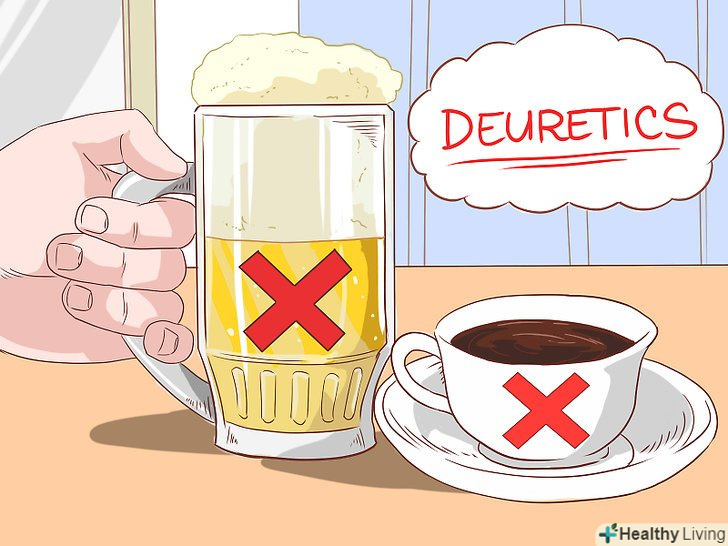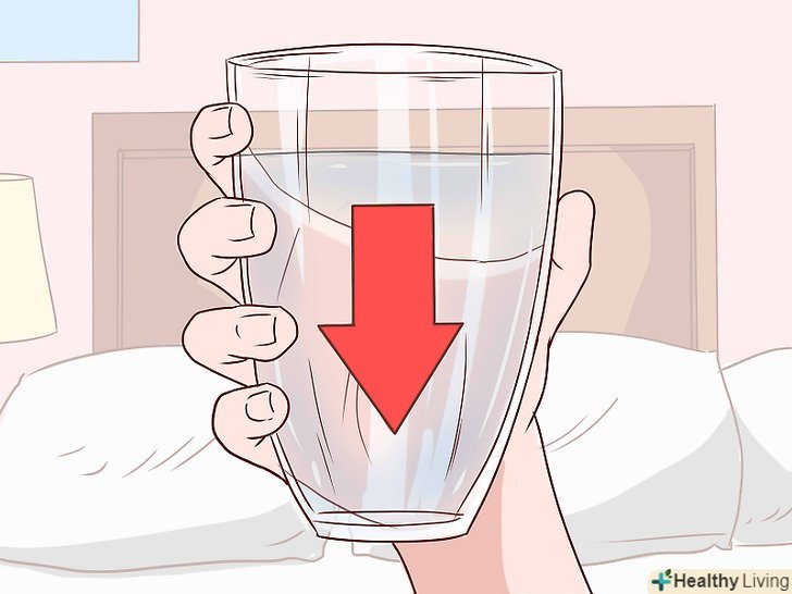Обмежте споживання рідини у вечірній час.якщо ви зменшите кількість рідини, що випивається за кілька годин перед сном, ваш організм буде виробляти менше сечі під час сну, і ймовірність нічного енурезу знизиться.[19]- Це не означає, що необхідно зменшити споживання рідини протягом усього дня. Вам як і раніше слід випивати близько восьми склянок води щодня. Просто постарайтеся робити це в основному в ранковий і денний час. Важливо, щоб організм не відчував нестачі рідини, оскільки зневоднення також може призводити до нічного енурезу у дорослих.[20]