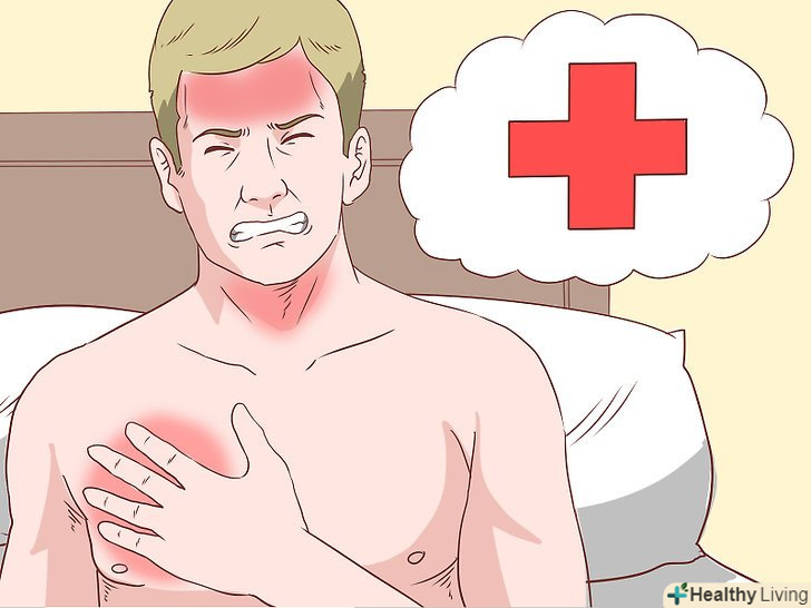 Придивіться до ознак, що свідчать про напади апное уві сні.якщо ви голосно хропіть, а вранці, прокинувшись, відчуваєте біль в грудній клітці, головний біль і першіння в горлі, ви, можливо, страждаєте раптовими зупинками дихання уві сні.[25] нічний енурез є ще одним симптомом цього захворювання у дорослих, які не мали раніше проблем з сечовим міхуром.- Якщо ви підозрюєте, що у вас напади апное, вам слід звернутися до лікаря, який встановить точний діагноз і призначить відповідне лікування.