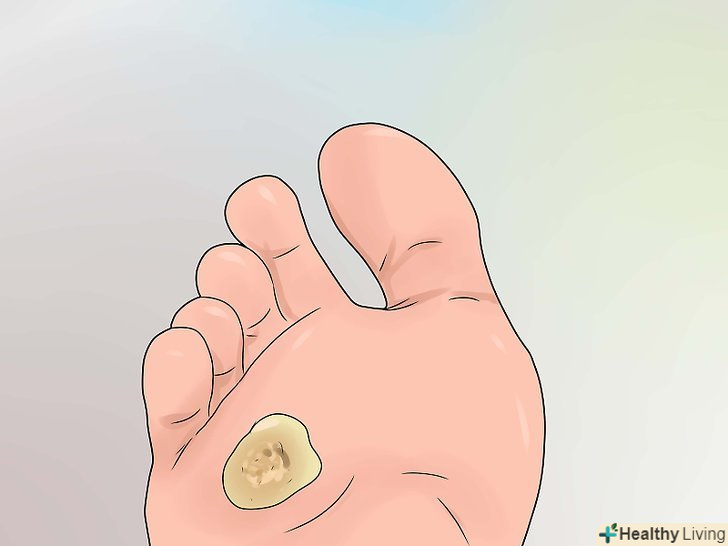 Зверніться за медичною допомогою для боротьби з виниклими проблемами.якщо у вас діабет, то ви схильні до підвищеного ризику серйозних проблем з ногами, що частково пов'язано з порушенням кровообігу кінцівок.[39]- При таких захворювання, як діабет, периферична невропатія та інші стани, що порушують нормальний кровообіг, для лікування мозолів і натоптишів потрібна медична допомога. Проконсультуйтеся з лікарем, перш ніж застосовувати будь-які засоби від мозолів і натоптишів в домашніх умовах.[40]