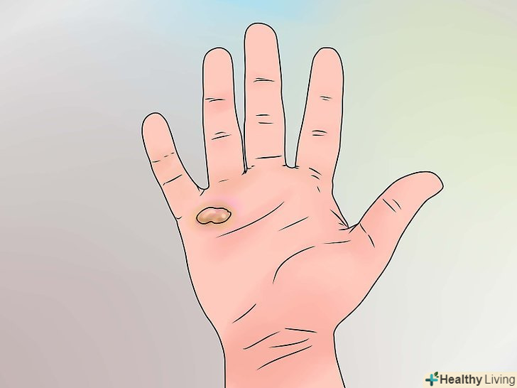 Слідкуйте за посиленням стану ваших рук.коли від тертя або підвищеного тиску шкіра грубіє на руках, є ймовірність, що вона може тріснути і запалитися.[55]- У деяких випадках на шкірі під загрубілими ділянками або поруч з ними утворюються пухирі. Коли таке відбувається, рідина пухиря з плином часу природним чином сама йде в шкіру. Але якщо пухир лопне і рідина витече назовні, здорові тканини, що оточують мозоль і натоптиші, можуть легко запалитися.[56]