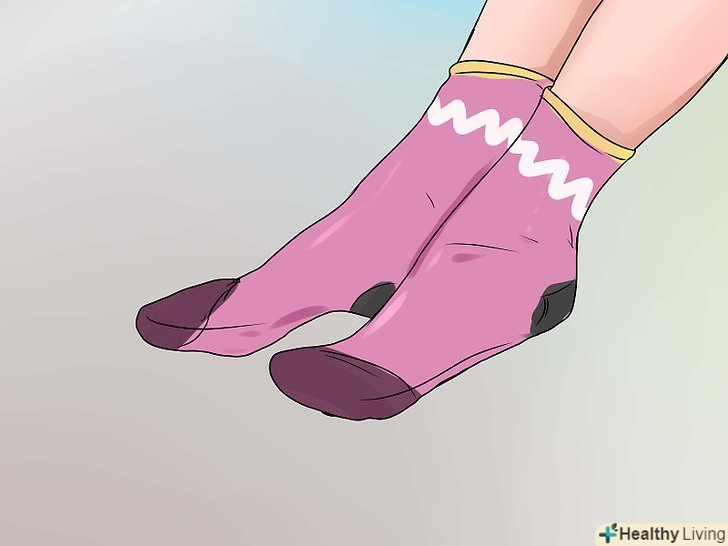 - Шкарпетки також повинні бути вам впору. Занадто тугі шкарпетки будуть стягувати пальці, викликаючи непотрібне тиск і тертя. Просторі шкарпетки можуть спадати і створювати додаткове тертя і тиск на певні ділянки ніг.[69]