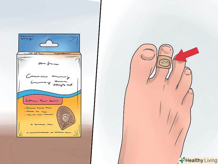 Скористайтеся мозольним пластиром, щоб видалити мозоль.мозольні пластирі з саліциловою кислотою до 40%, призначені для видалення мозолів, відпускаються без рецепта.[12]- Попередньо зробіть для ноги ванночку теплої води, потримайте в ній ногу приблизно п'ять хвилин, щоб розм'якшити тканини. Потім ретельно витріть ногу і пальці, після чого наклейте пластир.[13]