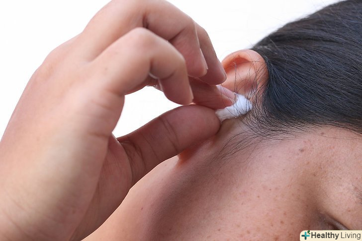 Злегка закрийте вхід у вухо ватним тампоном.- Висякайте ніс, щоб прочистити вуха.вушна біль часто викликається скупченням рідини в вушному каналі, яка тисне на барабанну перетинку. Один із способів знизити цей тиск-прибрати слиз або рідина через ніс. Спробуйте обережно залити трохи солоної води в вухо дитині, а потім відсмоктати за допомогою помпи.