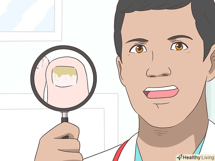 Проконсультуйтеся з лікарем з приводу лікування.Грибок нігтів за симптомами може нагадувати інші захворювання, такі як псоріаз. Лікар проведе необхідні обстеження, щоб визначити причину появи грибка і вибрати найкраще лікування. Грибкові інфекції можна вилікувати декількома способами. Лікар вирішить, який з курсів лікування підійде вам найкраще.[7]