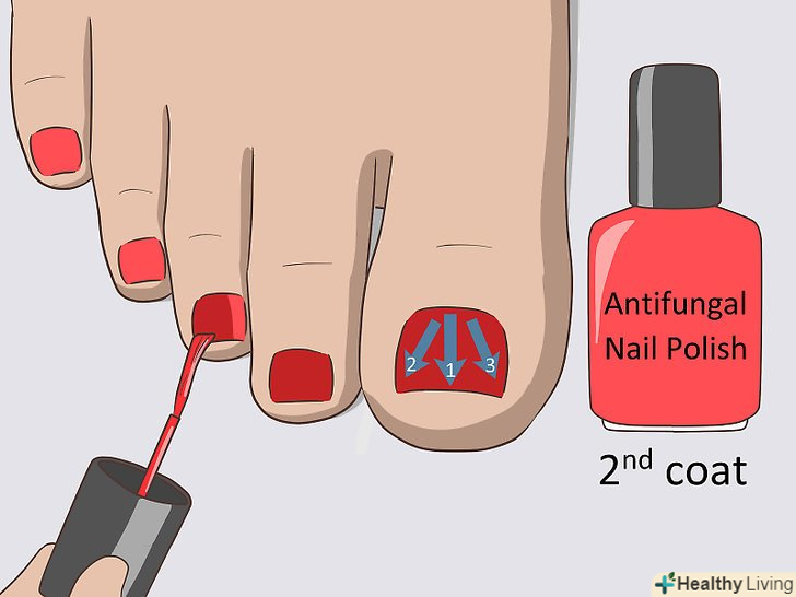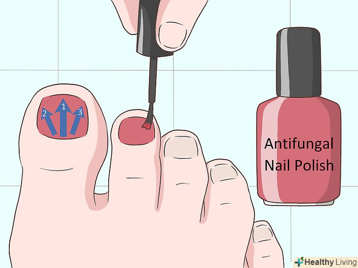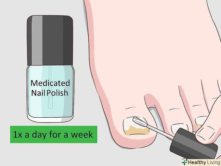 Користуйтеся лікарським лаком для нігтів для більш планомірного лікування.Наносите такий лак для нігтів один раз в день протягом тижня. В кінці тижня протріть нігті ватним диском, попередньо змочивши його в спирті. Повне зцілення має наступити протягом року.[9]