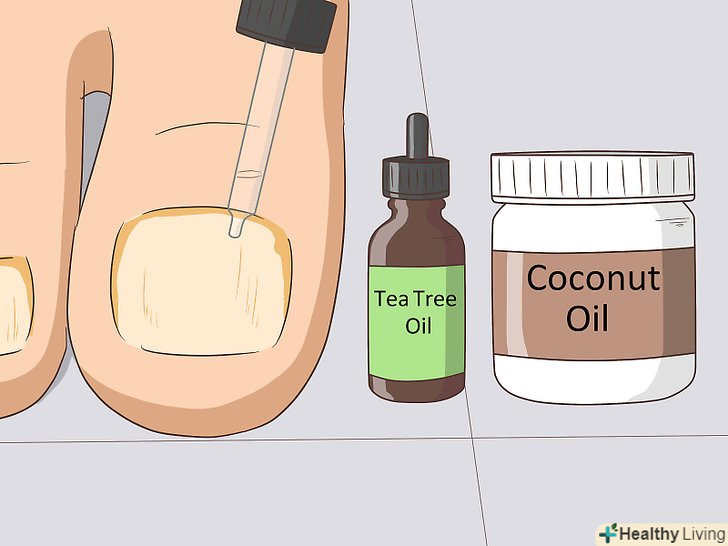 Використовуйте прості народні засоби.олія чайного дерева або кокосова олія мають протигрибкові властивості. Скористайтеся цими простими народними засобами для боротьби з інфекцією.[11]