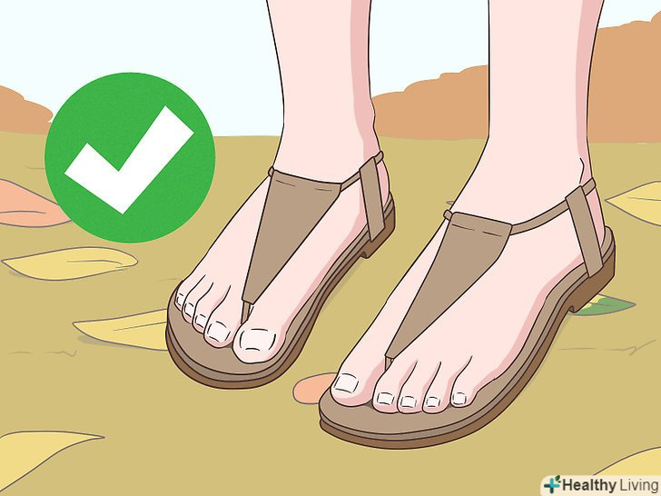 Намагайтеся частіше носити сандалі.нерідко перша думка, яка спадає на думку при появі грибка, — приховати його, проте найкраща тактика — це дозволити пальцях дихати. Інфекція пройде швидше, якщо пальці будуть довше перебувати на свіжому повітрі.