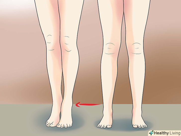 - Встаньте до стіни. Поверніться в сторону. Підніміть одну ногу вгору на секунду, а потім опустіть її вниз на іншу ногу. Повторюйте вправу кілька разів на день по 10 підходів на кожну ногу.