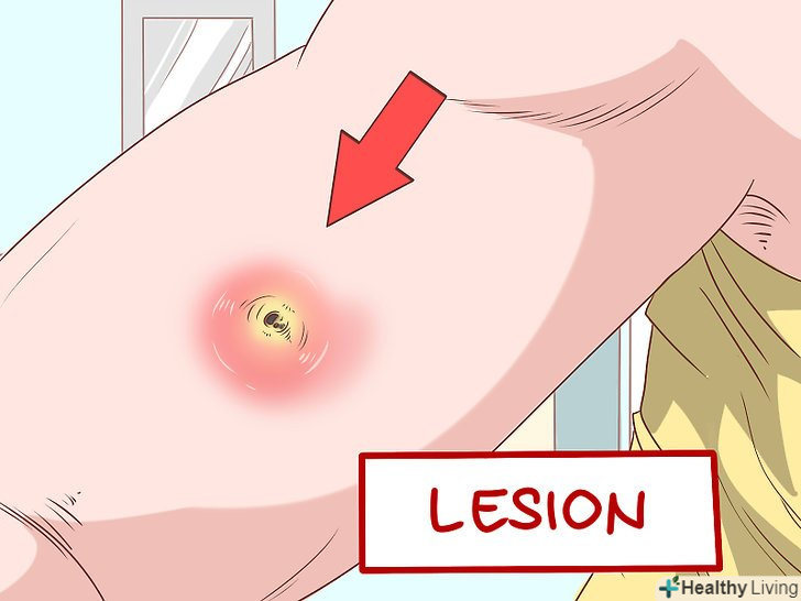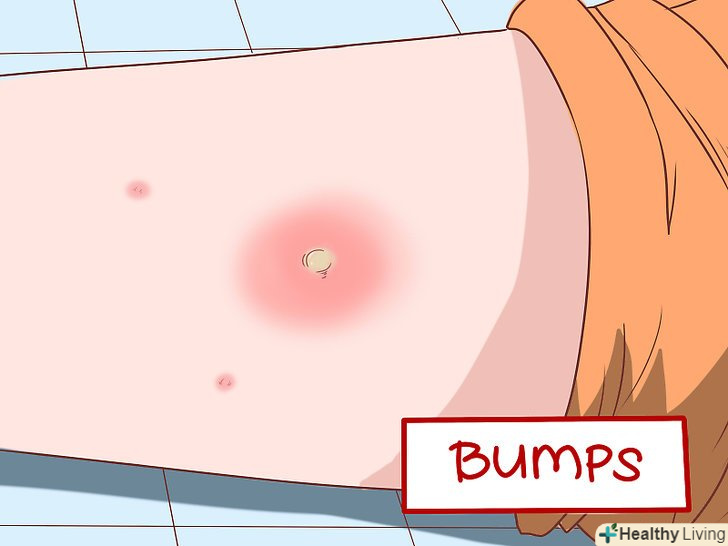 Зверніть увагу на горбки або почервонілі і запалені ділянки на шкірі.інфекція МРЗС проявляється у вигляді горбків або запалених областей на шкірі. Часто їх можна сплутати зі слідами від укусів комах або павуків, або вони можуть нагадувати вугри. Перевірте, чи немає у вас на шкірі почервонілих, запалених або гарячих на дотик ділянок.[2]- Слідкуйте за невеликими горбками, порізами, подряпинами і червоними ділянками. Якщо вони запаляться, зверніться до лікаря.[3]