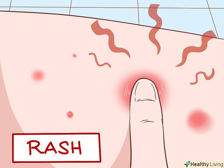Перевірте, чи немає у вас висипу.пошукайте у себе на шкірі червонуватий висип. Якщо ви виявите покриті висипом ділянки, уважно огляньте їх. Якщо вони здаються гарячими на дотик, швидко розростаються або викликають хворобливі відчуття, зверніться до лікаря.[6]