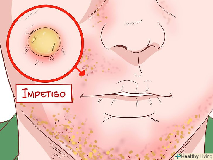 Перевірте, чи немає у вас стрептодермії.при стрептодермії на шкірі утворюються гнійні пухирі, які можуть мати досить великі розміри. Пухирі можуть лопатися і залишати після себе кірку медового кольору навколо зараженої області.[12]