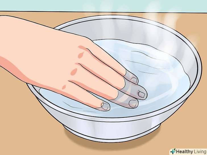 Замочіть ніготь в теплій воді.замочіть палець в теплій воді на 15-20 хвилин. Замочування допоможе вгамувати біль в пальці і зніме набряк. Палець можна замочувати 3-4 рази на день.[4]- Насухо витріть палець після замочування. Палець повинен залишатися сухим весь той час, що ви його не замочуєте.