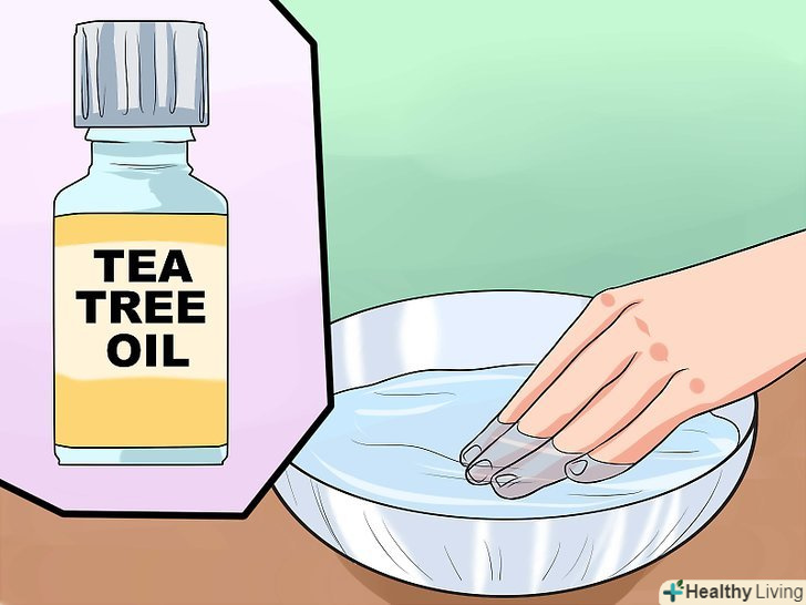 Спробуйте масло чайного дерева.олія чайного дерева має протигрибкові та антимікробні властивості, що досить корисно при врослому нігті.[9] коли будете замочувати палець, додайте в теплу воду дві-три краплі олії чайного дерева. Змішайте дві-три краплі олії чайного дерева зі столовою ложкою оливкової олії, після чого нанесіть цю суміш на палець, щоб запобігти потраплянню інфекції.- Масло чайного дерева зробить ніготь більш м'яким. Щодня наносите на ніготь суміш із столової ложки оливкової олії і однієї краплі олії чайного дерева. Якщо хочете, наносите масло чайного дерева замість мазі з антибіотиком, так як наносити обидва засобів немає сенсу.[10]