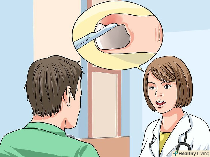 Слідкуйте за погіршенням симптомів.більшість випадків врослих нігтів можна вилікувати вдома або стандартним лікуванням. Деякі інфекції можуть перерости в більш важку форму. Якщо ваші симптоми погіршаться, негайно зверніться до лікаря або до відділення невідкладної допомоги.[17]- Зверніться за медичною допомогою в разі виникнення наступних симптомів: посилення болю навколо врослого нігтя, збільшення почервоніння і хворобливої чутливості, неможливість зігнути палець ні в одному суглобі і підвищення температури тіла.