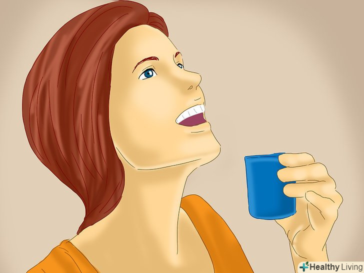 Полощіть горло теплою солоною водою.простим і безпечним способом, який допомагає заспокоїти біль в горлі при застуді або грипі є полоскання теплою солоною водою. Розчиніть половину чайної ложки солі в склянці теплої води. Візьміть невелику кількість розчину в рот і прополощіть горло протягом 30 секунд.[7] повторюйте процедуру в міру необхідності.- Не ковтайте розчин для полоскання горла, так як пити солону воду шкідливо для здоров'я. Якщо горло полоще дитина, стежте за тим, щоб він не поперхнулся.[8]