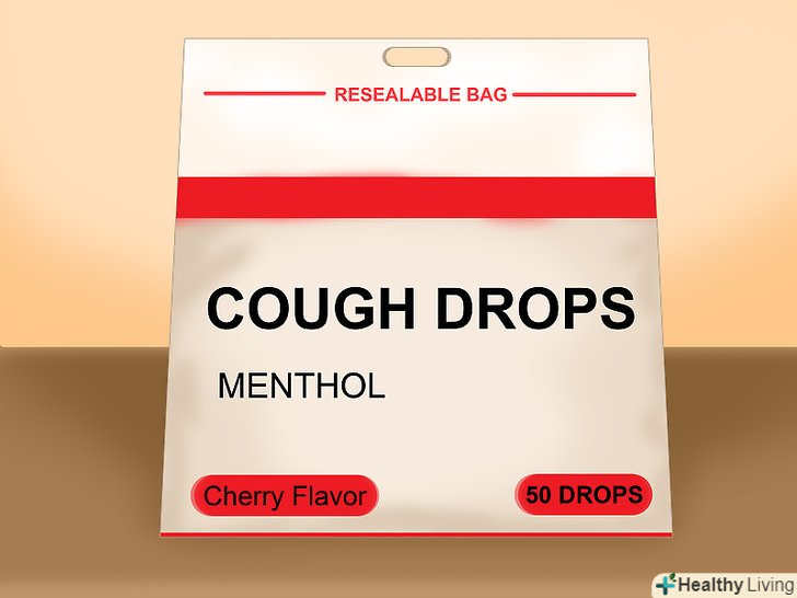 Використовуйте спрей для горла або краплі від кашлю, що відпускаються без рецепта.щоб зменшити кашель і біль у горлі, використовуйте таблетки або спреї для горла. [19] ви можете використовувати ці препарати в поєднанні з іншими медикаментозними засобами від застуди та грипу. Вони допомагають зменшити біль і роздратування в горлі, які викликають кашель.