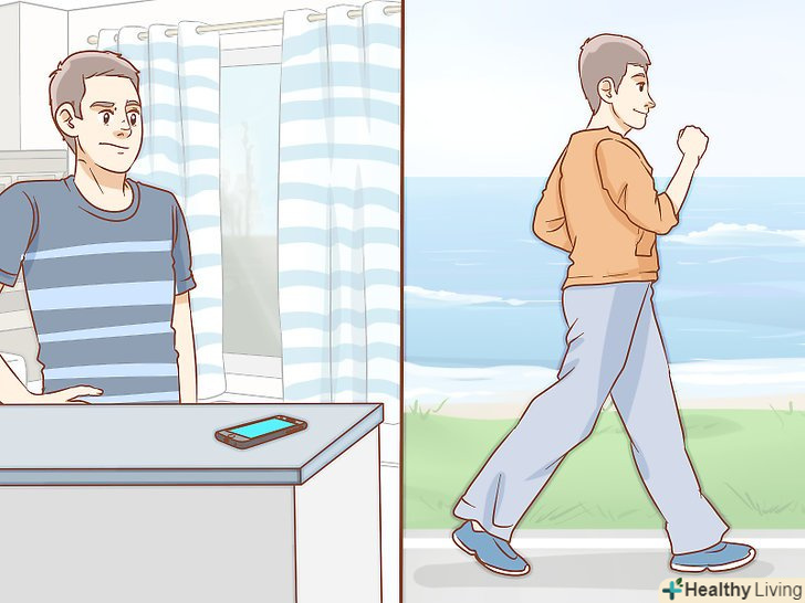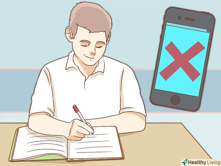 Приберіть телефон в сторону.Покладіть телефон туди, де ви не будете його бачити. На роботі, на навчанні або десь ще переводите телефон в беззвучний режим, щоб він не відволікав вас.[7]